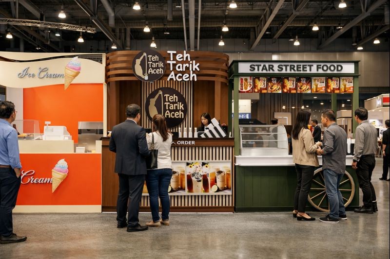 Oleh karena itu, kami menawarkan solusi lengkap untuk desain booth yang unik, produksi elemen promosi yang kuat, dan eksekusi teknis yang presisi, untuk menghadirkan ruang pamer yang benar-benar berbicara.